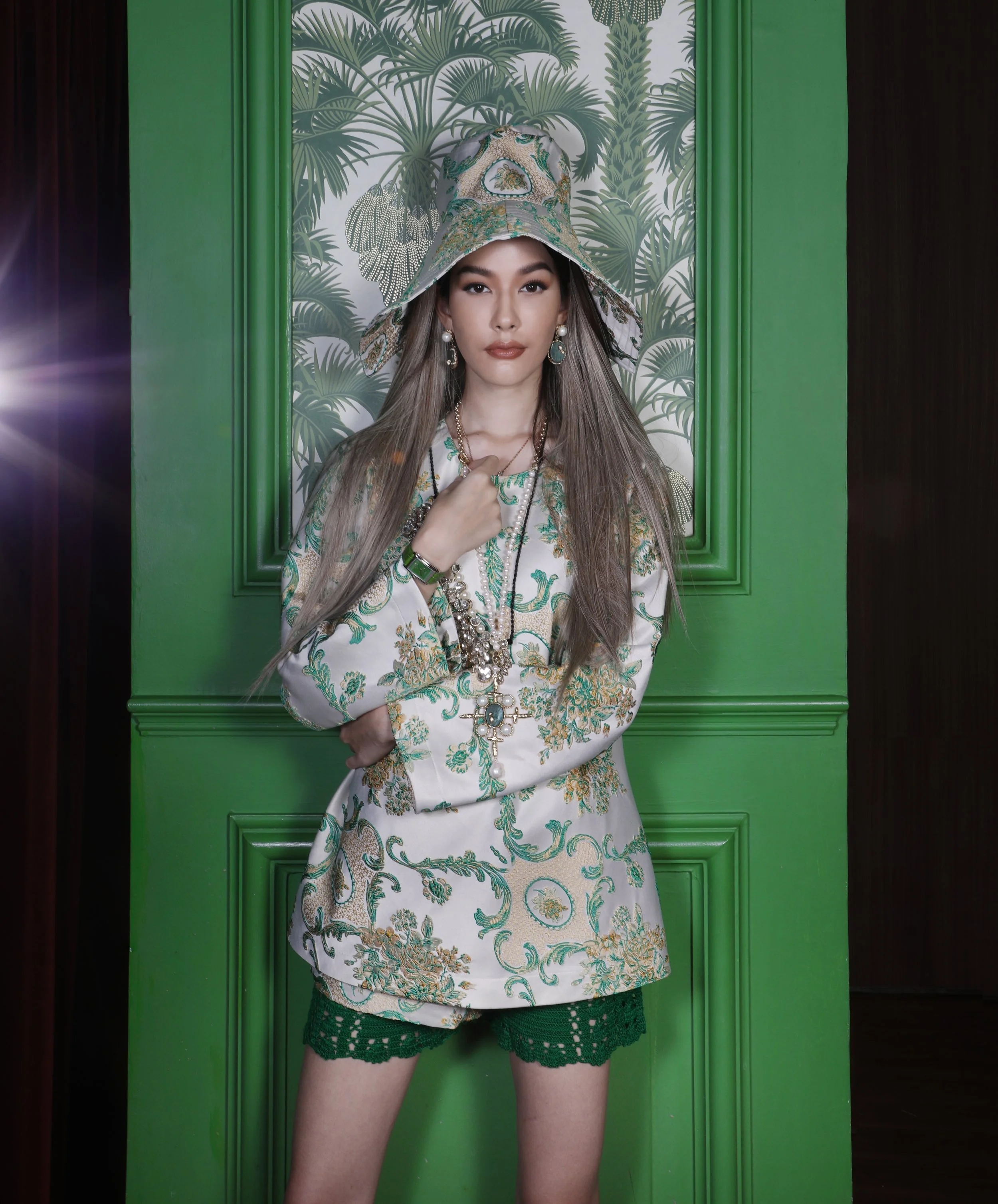 Following the fame and success of her TV series from Channel 3, the rising star Gina Salas was invited by Surround again for another photoshoot at Tenshino Bangkok, a stylish Japanese restaurant at Pullman Bangkok King Power hotel. Gina looks very chic and edgy in the latest pieces from SODA, the renowned Thai fashion brand, complemented by LONGINES DolceVita watches.