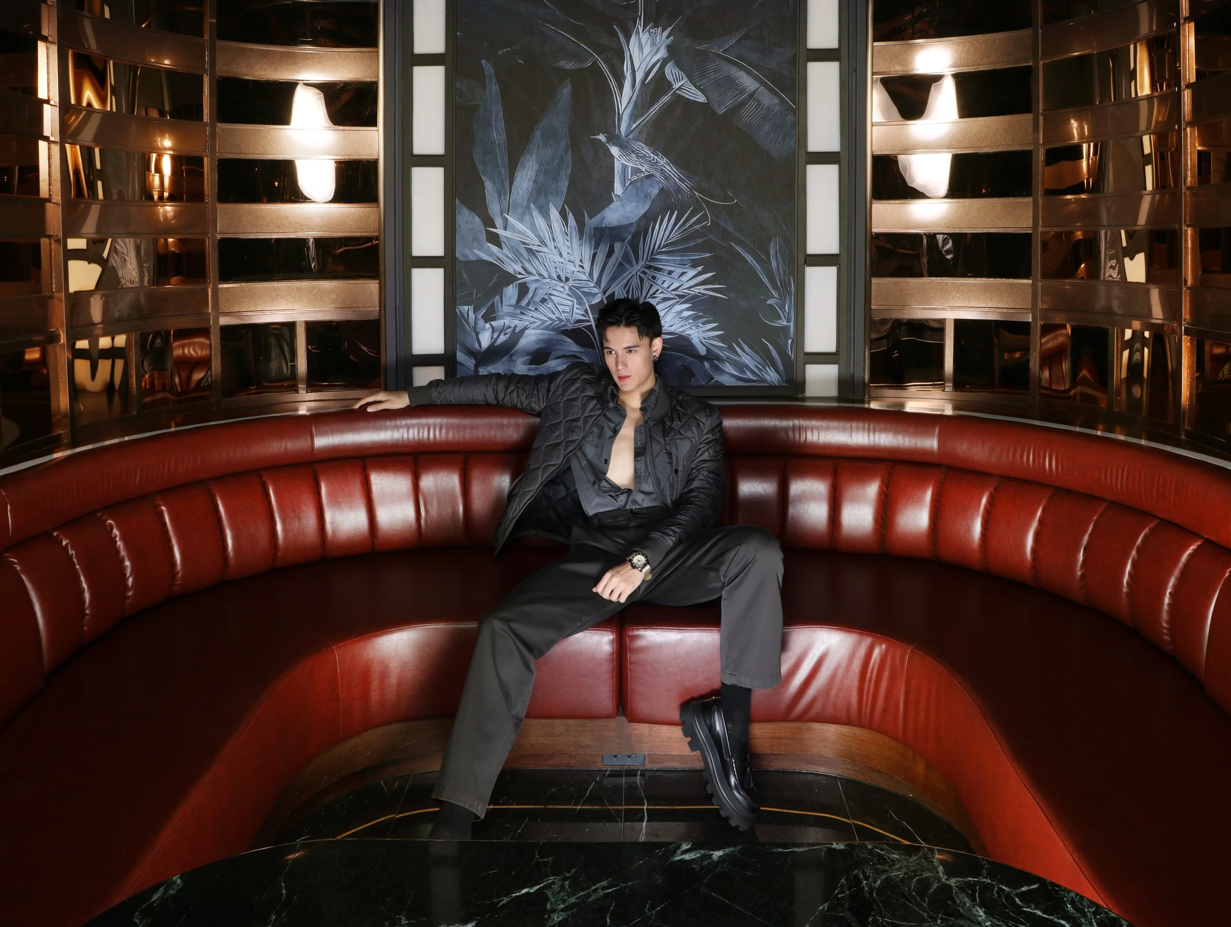 พระเอกดาวรุ่งหล่อมาก เทศน์ ไมรอน มาถ่ายแฟชั่นครั้งที่ 2 กับ SURROUND ที่ ROGUES บาร์ที่หล่อจัดที่ โรงแรม อินเตอร์คอนติเนนตัล กรุงเทพ สุขุมวิท ที่บาร์แห่งนี้เป็นส่วนผสมที่ลงตัวระหว่างตะวันออกและตะวันตก ท่ามกลางบรรยากาศการตกแต่งในสไตล์อาร์ต เดโค รายล้อมด้วยรายละเอียดที่เรียบเท่ อบอุ่นด้วยเก้าอี้หนังสวยโก้ แต่งเติมด้วยความวินเทจ เพิ่มความหรูหราด้วยโคมไฟและของตกแต่งสุดหรูเน้นโทนสีทอง