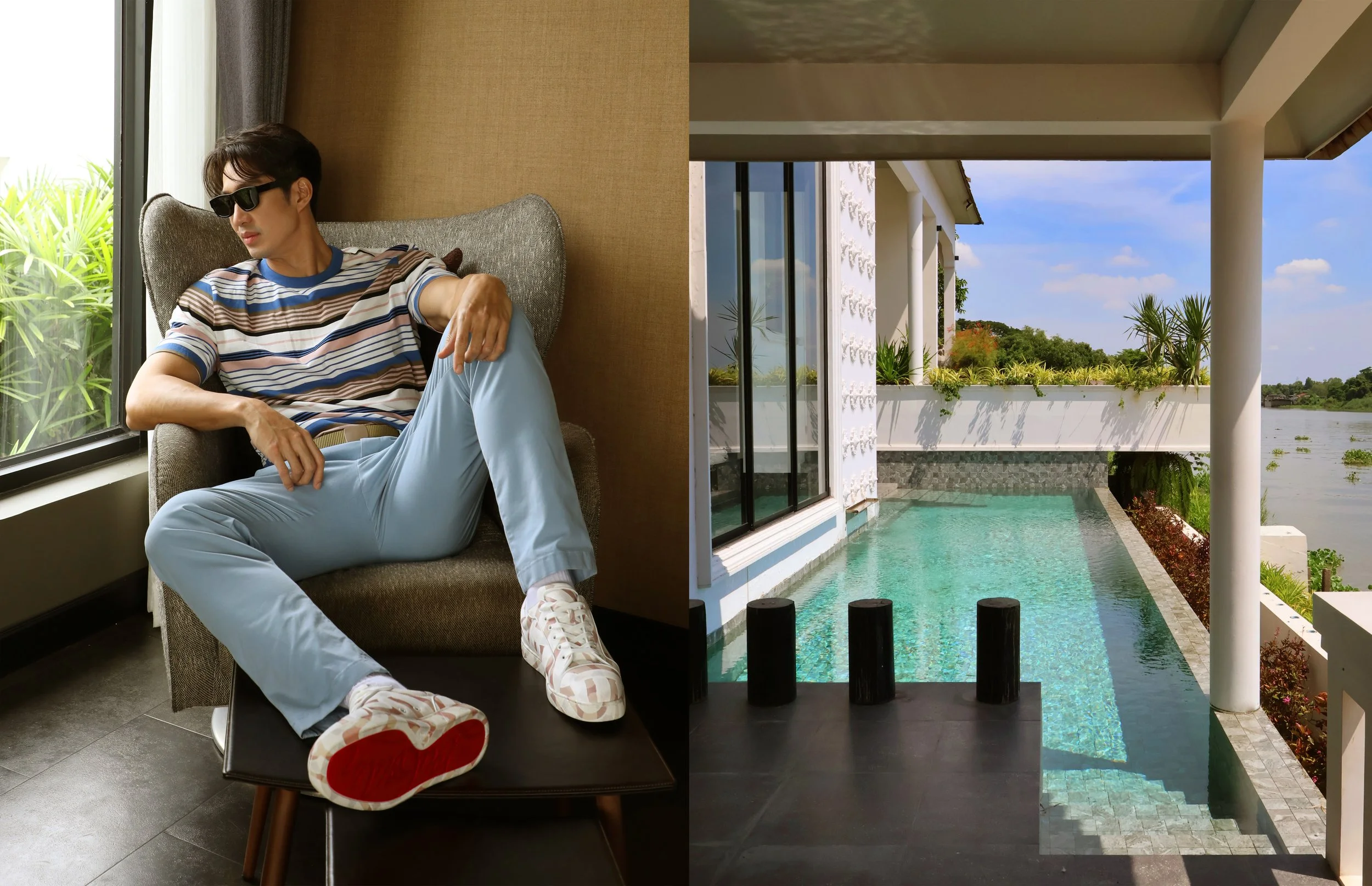 clothes : Paul Smith / shoes : Christian Louboutin / sunglasses : FENDI